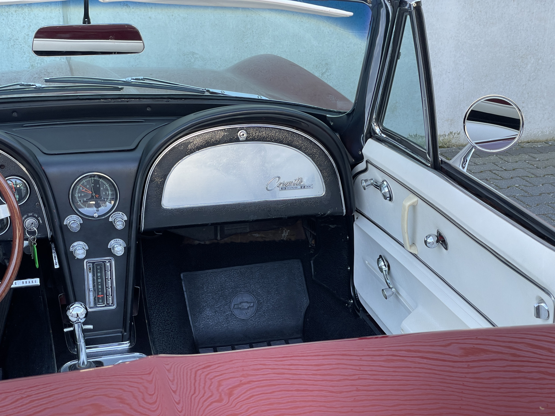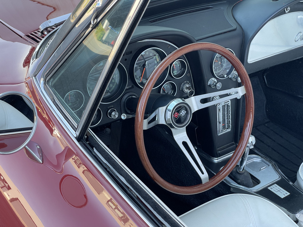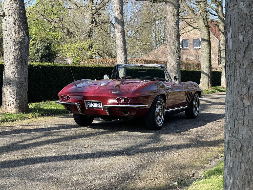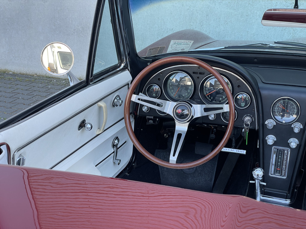 Under the long hood sits a lively 327 V8 engine, paired with a 4-speed manual transmission. The engine starts effortlessly and runs smoothly. Thanks to the dual Edelbrock 4-barrel carburetors, this Stingray delivers more than enough power and produces a rich, distinctive V8 sound that perfectly matches its character. The addition of electric power steering provides extra comfort while preserving the authentic driving experience.