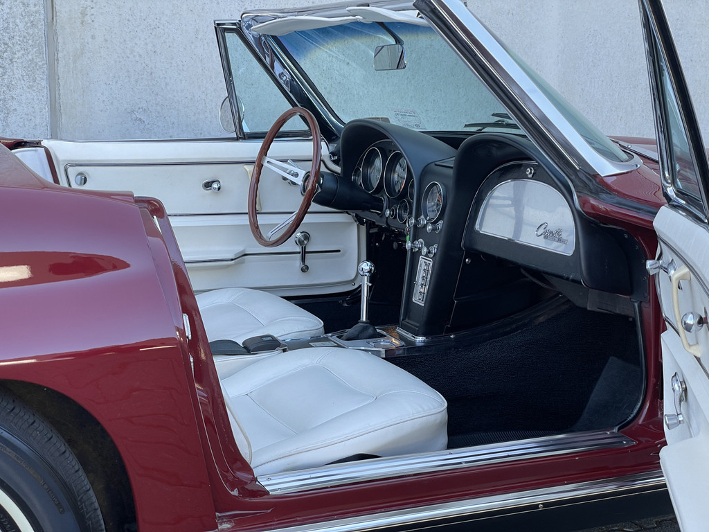 De tweede generatie Corvette Stingray geldt als een van de meest iconische modellen in de Amerikaanse autogeschiedenis – en terecht. Deze fraaie Convertible uit 1965 is uitgevoerd in de karakteristieke kleur Milano Maroon met een bijpassend verzorgd interieur en ademt de pure sfeer van de jaren zestig.