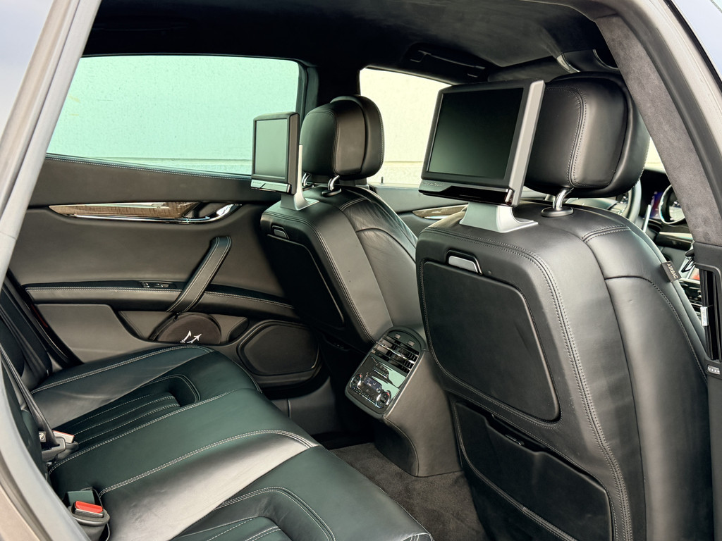 Ook voor de passagiers achterin is deze Maserati een luxe bestemming. De 4-zone climate control zorgt ervoor dat iedere inzittende zijn eigen comfort kan bepalen, terwijl de verwarmde stoelen en het rear seat entertainment systeem met alle toebehoren lange ritten veranderen in pure ontspanning. De 20” velgen maken het geheel af en geven de auto precies die uitstraling die je van een Quattroporte mag verwachten: stijlvol, gespierd en onderscheidend zonder te overdrijven.