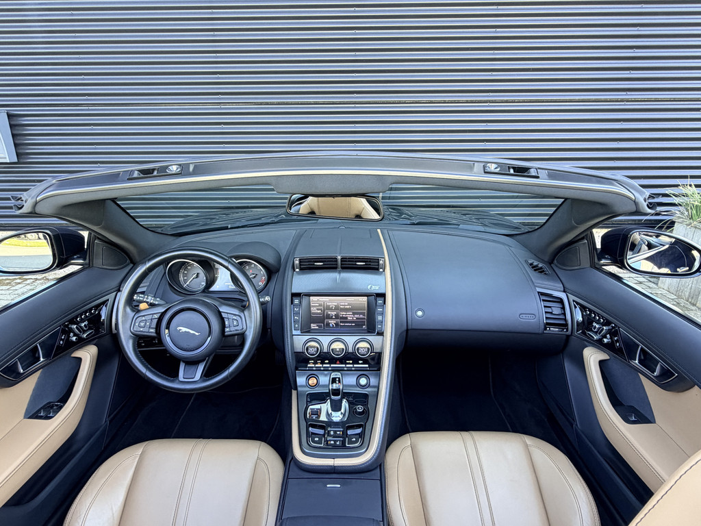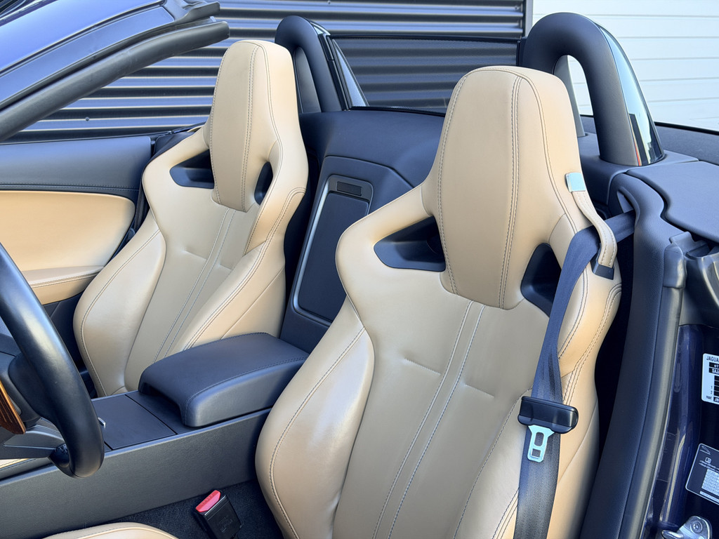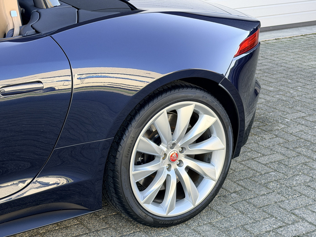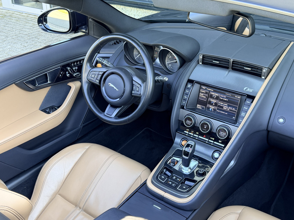Deze F-Type is uitgevoerd in het elegante Blu Sapphire metallic, een kleur die het gespierde design van de auto prachtig benadrukt. Het interieur vormt een stijlvol contrast met beige leder, voorzien van sportieve Performance-stoelen die elektrisch 14-voudig verstelbaar zijn en uiteraard zijn uitgerust met stoelverwarming. Een cockpit die perfect aansluit bij het karakter van de auto: sportief, luxueus en volledig gericht op de bestuurder.