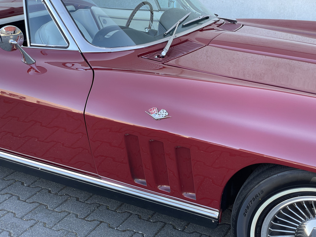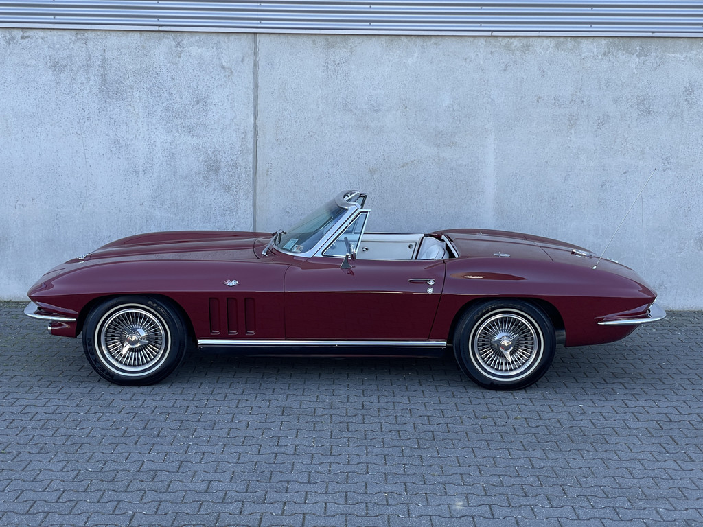 De tweede generatie Corvette Stingray geldt als een van de meest iconische modellen in de Amerikaanse autogeschiedenis – en terecht. Deze fraaie Convertible uit 1965 is uitgevoerd in de karakteristieke kleur Milano Maroon met een bijpassend verzorgd interieur en ademt de pure sfeer van de jaren zestig.