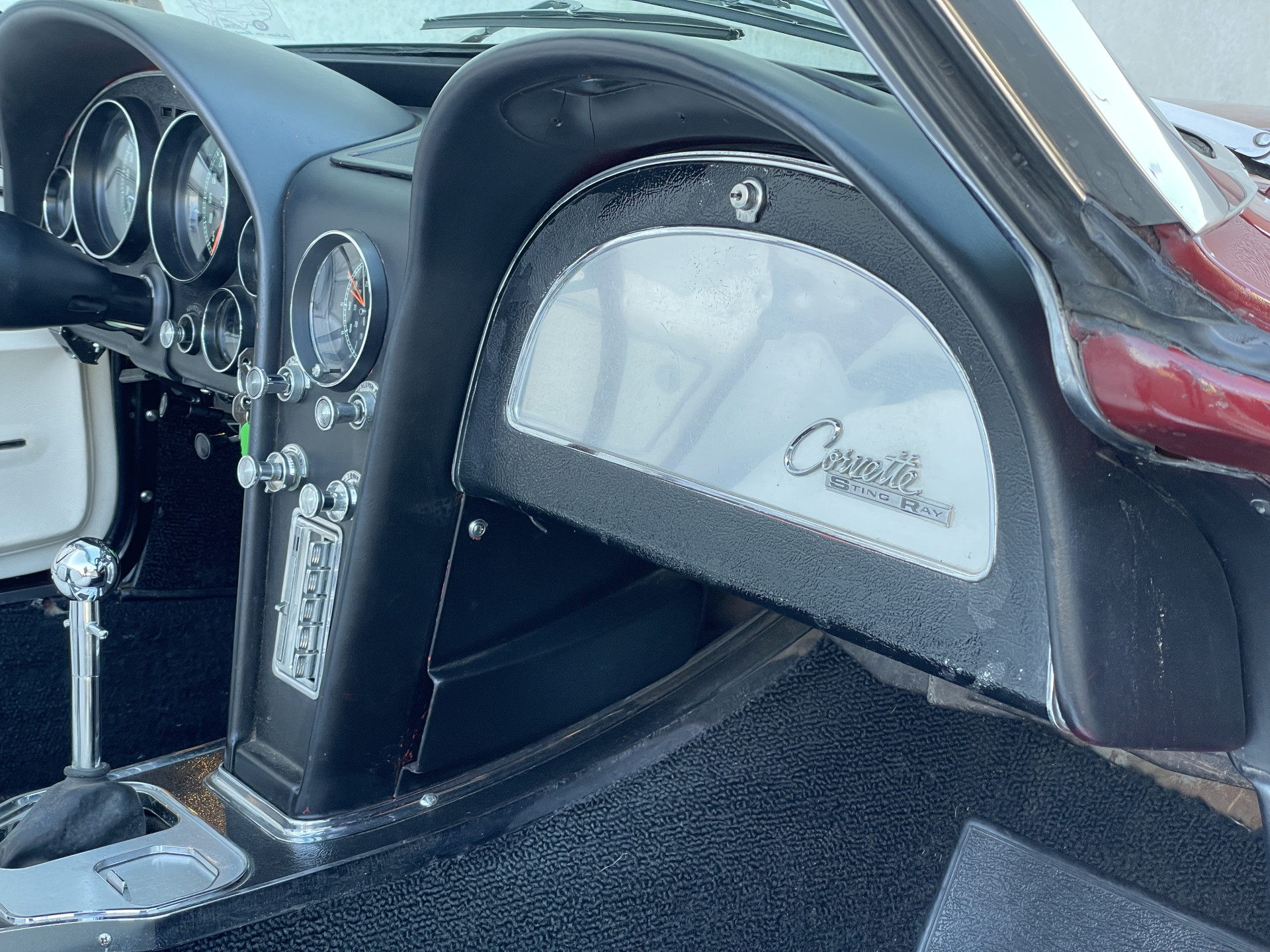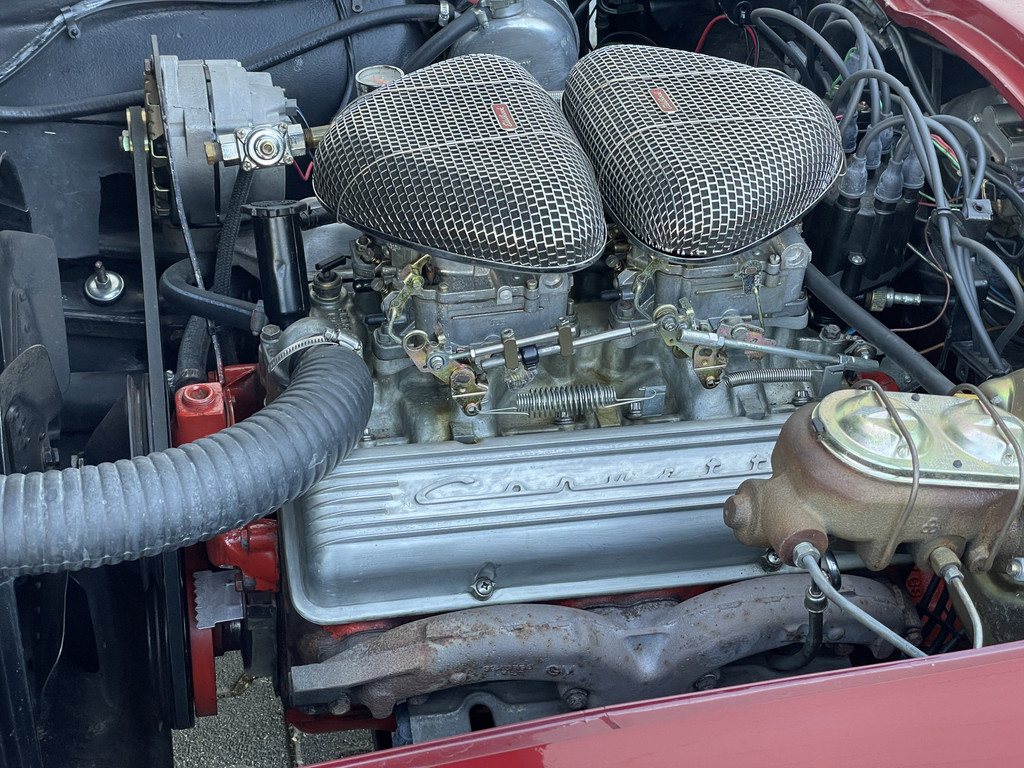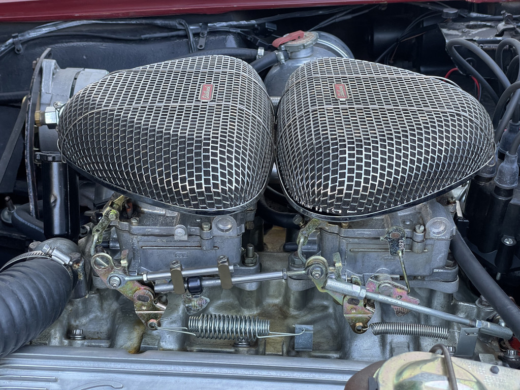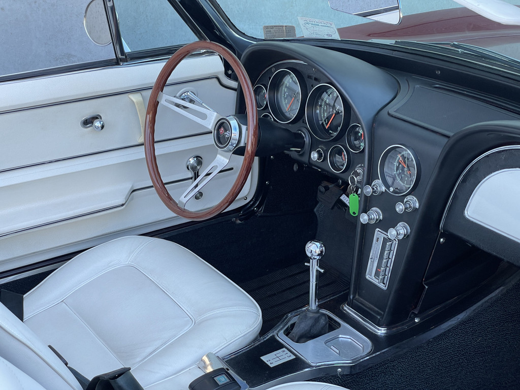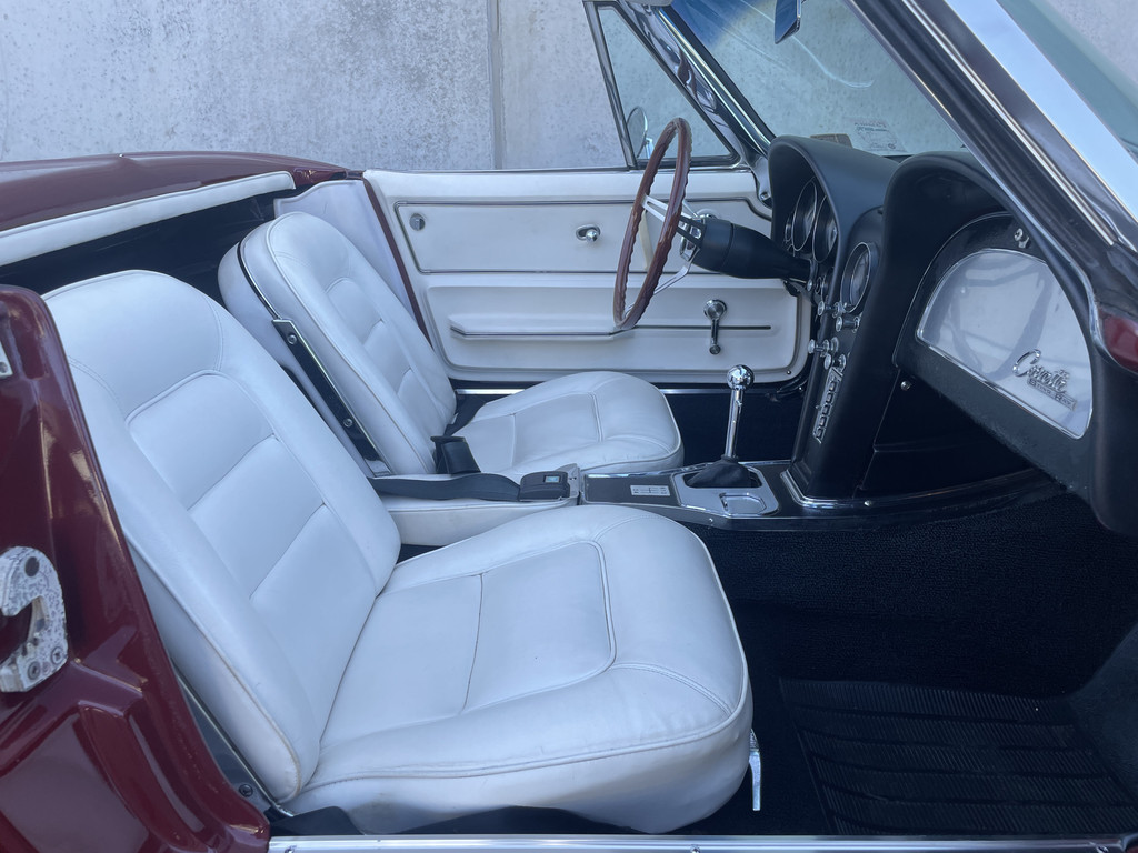 Under the long hood sits a lively 327 V8 engine, paired with a 4-speed manual transmission. The engine starts effortlessly and runs smoothly. Thanks to the dual Edelbrock 4-barrel carburetors, this Stingray delivers more than enough power and produces a rich, distinctive V8 sound that perfectly matches its character. The addition of electric power steering provides extra comfort while preserving the authentic driving experience.