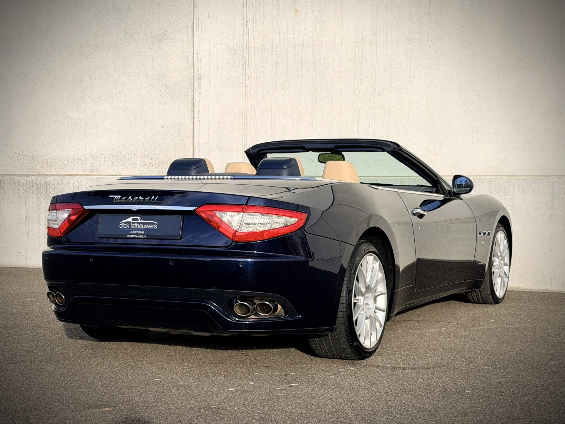De verschijning van deze GranCabrio is pure verleiding. Blu Oceano, diep en elegant, komt onder daglicht tot leven en vormt een onweerstaanbare combinatie met de warme Sabbia lederen bekleding. Het interieur wordt verder verfijnd door Blu Navy accenten, waardoor een sfeer ontstaat van tijdloze luxe en mediterrane klasse — licht, luchtig en verfijnd. Je voelt onmiddellijk die typisch Italiaanse mix van smaak, flair en vakmanschap: nergens overdreven, overal precies raak.