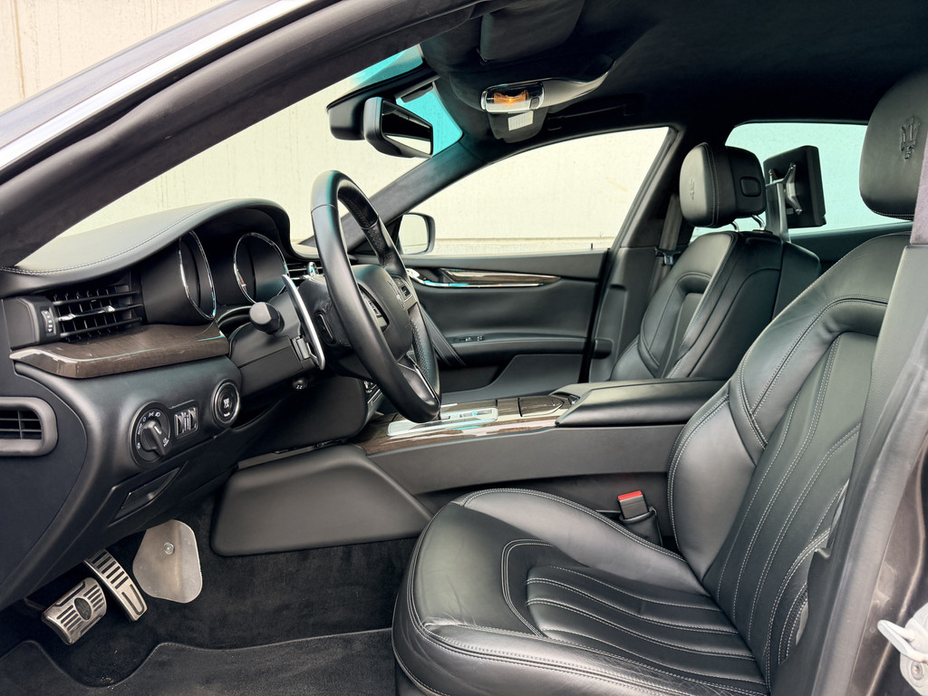 Ook voor de passagiers achterin is deze Maserati een luxe bestemming. De 4-zone climate control zorgt ervoor dat iedere inzittende zijn eigen comfort kan bepalen, terwijl de verwarmde stoelen en het rear seat entertainment systeem met alle toebehoren lange ritten veranderen in pure ontspanning. De 20” velgen maken het geheel af en geven de auto precies die uitstraling die je van een Quattroporte mag verwachten: stijlvol, gespierd en onderscheidend zonder te overdrijven.