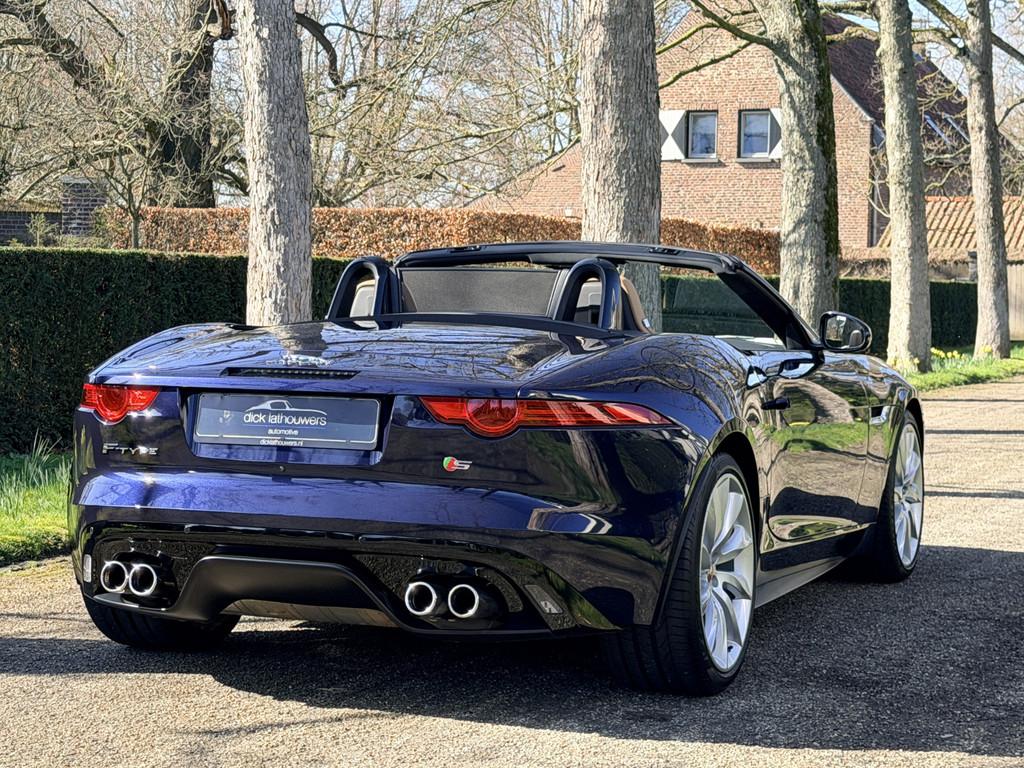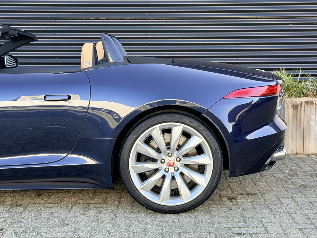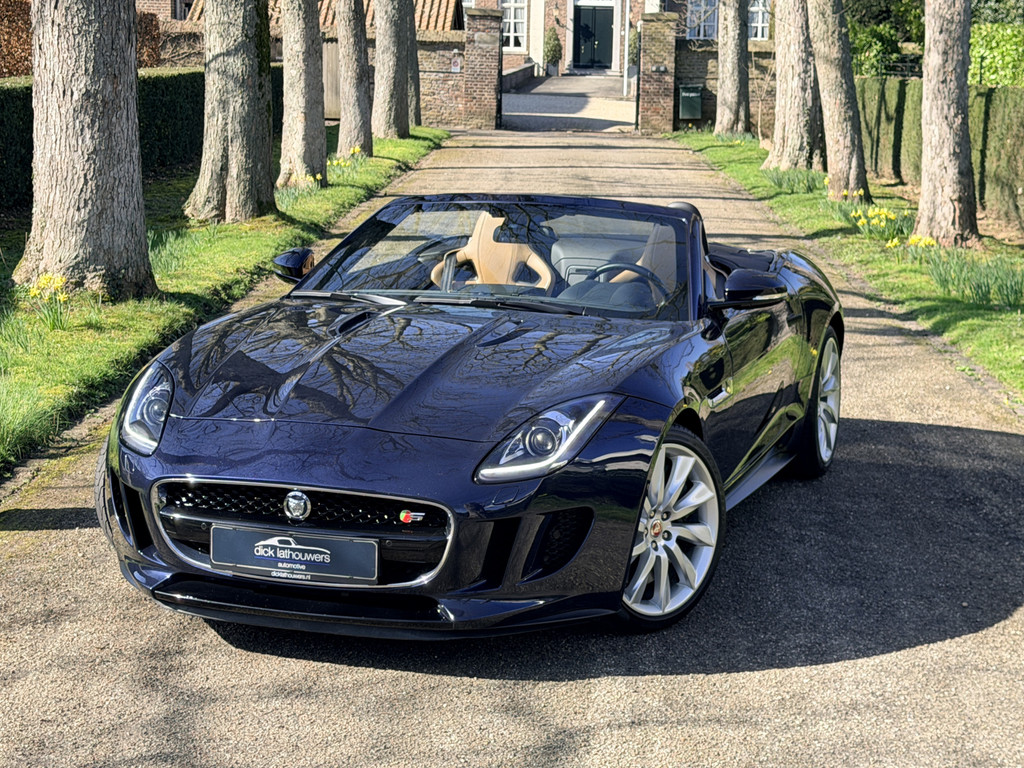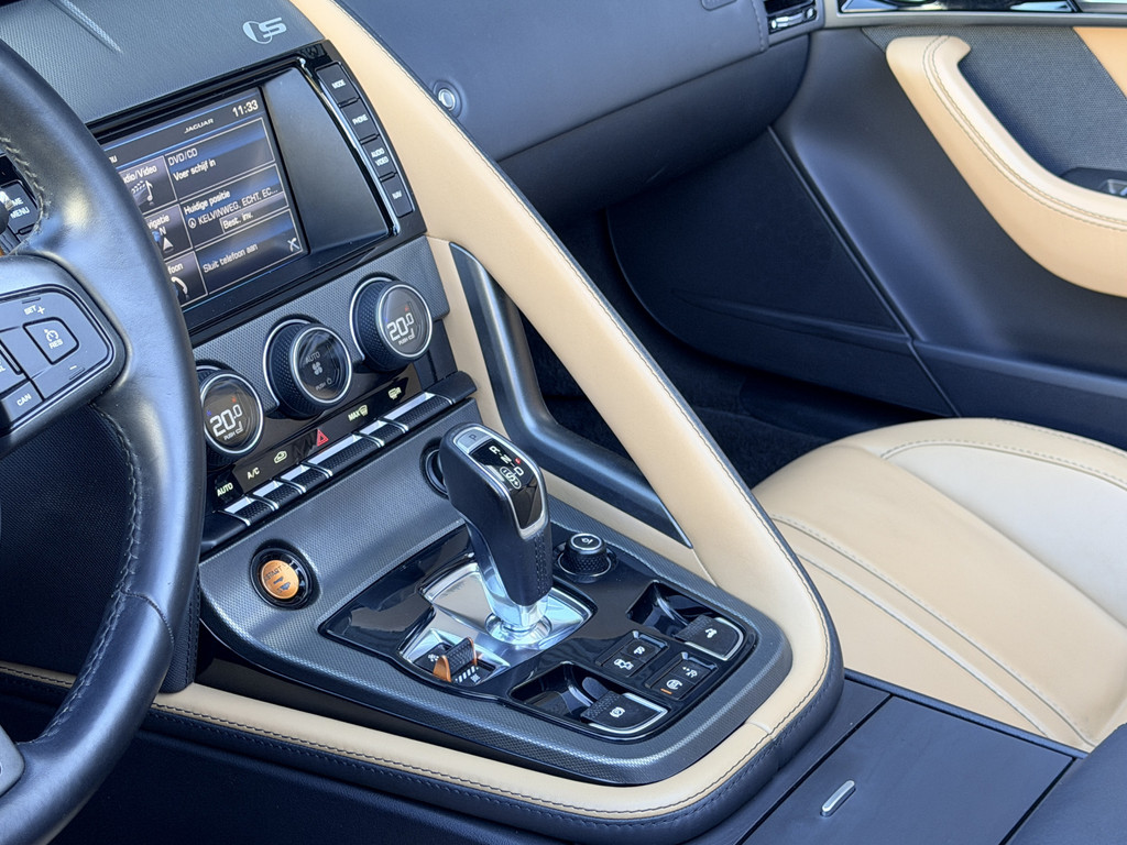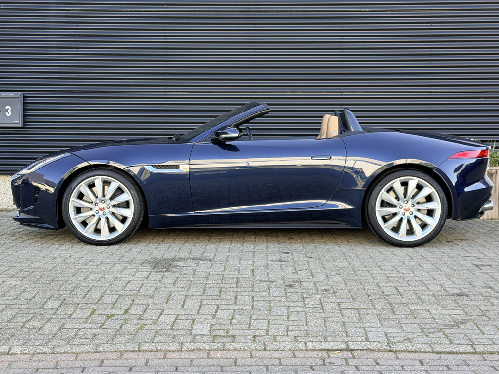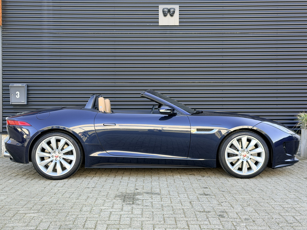 Deze F-Type is uitgevoerd in het elegante Blu Sapphire metallic, een kleur die het gespierde design van de auto prachtig benadrukt. Het interieur vormt een stijlvol contrast met beige leder, voorzien van sportieve Performance-stoelen die elektrisch 14-voudig verstelbaar zijn en uiteraard zijn uitgerust met stoelverwarming. Een cockpit die perfect aansluit bij het karakter van de auto: sportief, luxueus en volledig gericht op de bestuurder.